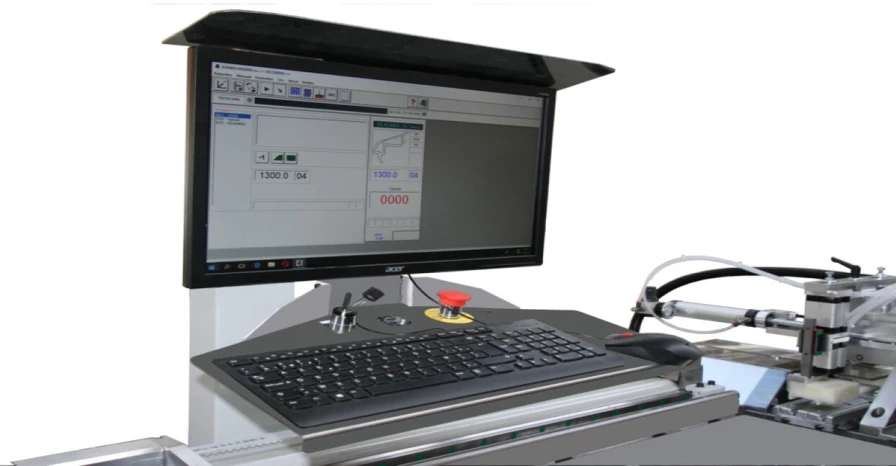Plne riadený počítačom, prostredníctvom pripojenia k okennému programu je vylúčená ručná obsluha a - zadávanie údajov. Pri použití na píle na zasklievacie lišty umožňuje elektronická meracia tyč prenášať rozmery pomocou vysielača do počítača elektronického dorazu (bez káblov a dátových čipov).
